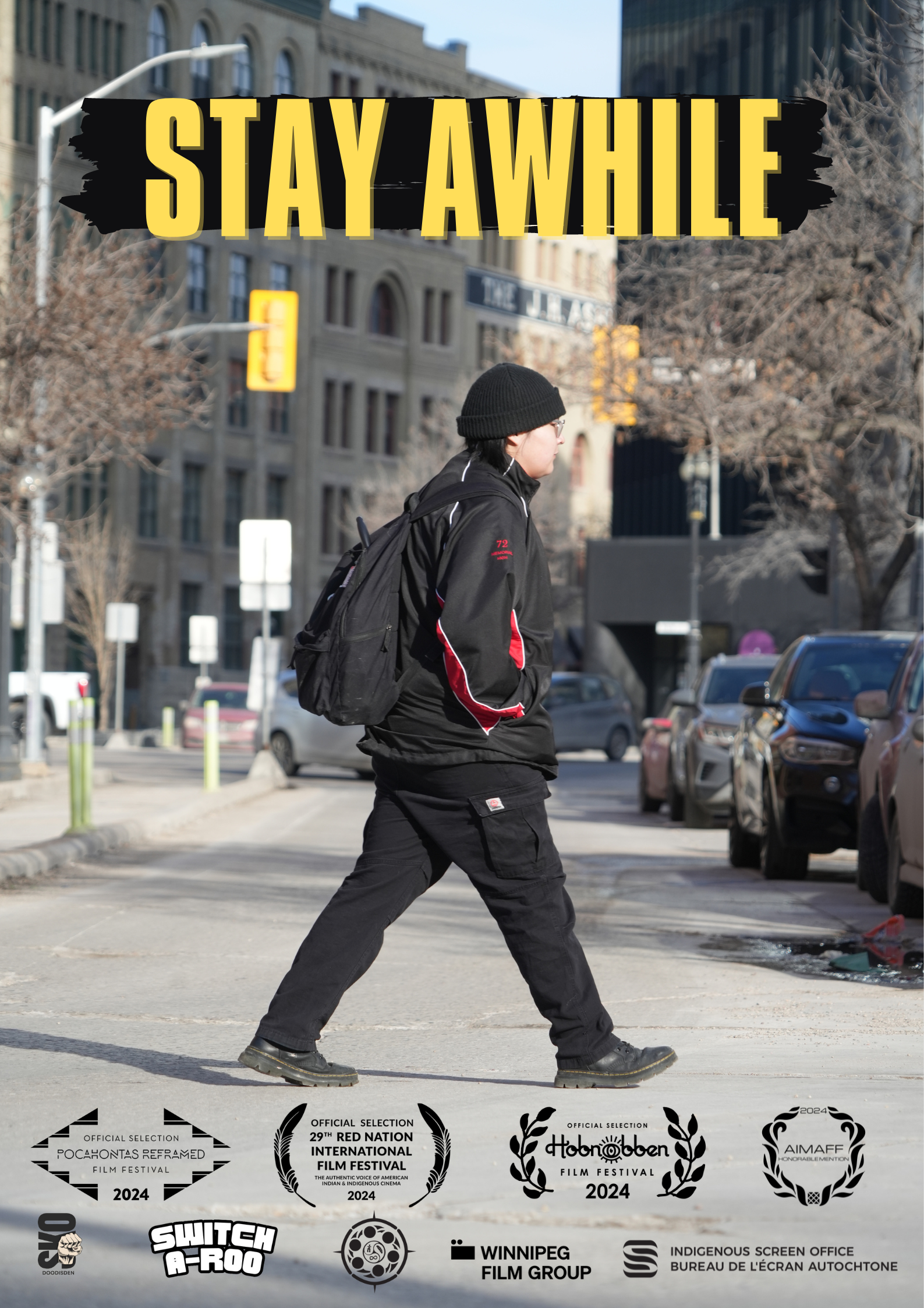 *Stay Awhile is a short narrative film developed through the Winnipeg Indigenous Filmmakers Collective’s Skodoodisden Project in 2024. Produced in partnership with Team 3, and directed by John Seymour, the film centres on quiet moments of connection and reflection, with an emphasis on character and atmosphere. Stay Awhile screened in Winnipeg and at festivals across Turtle Island, including the Gimli International Film Festival, Red Nation International Film Festival, and Pocahontas Reframed, and is currently in non-exclusive distribution with the Winnipeg Film Group.